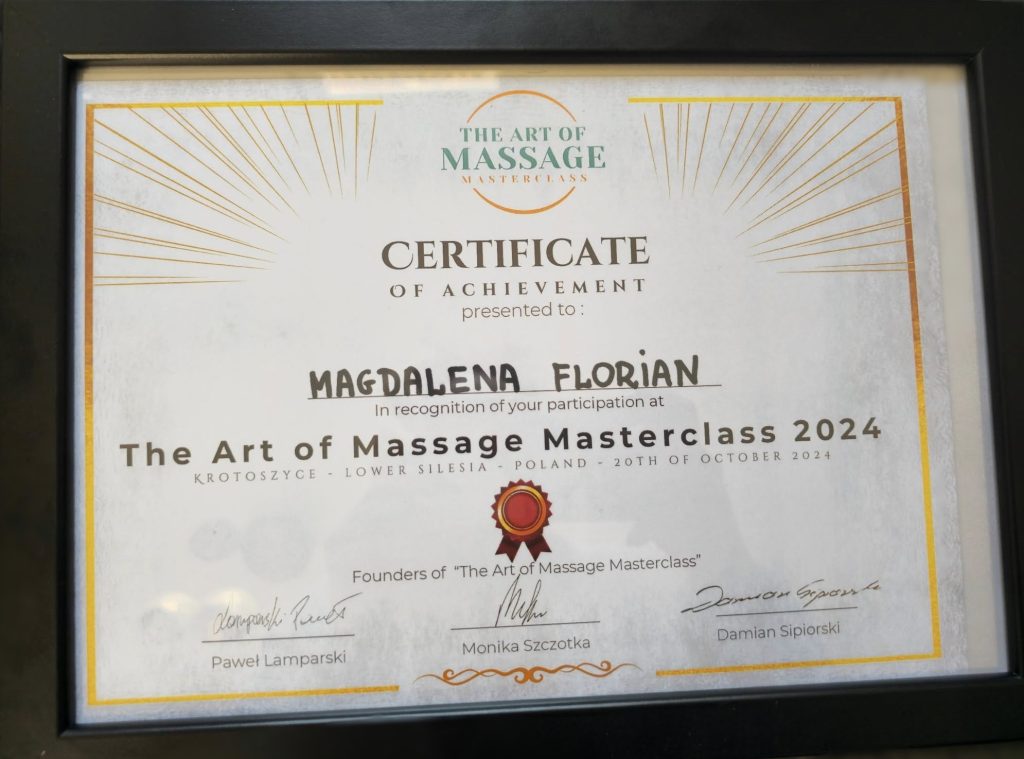 Magdalena Florian to doświadczona konsultantka dobrego samopoczucia, która specjalizuje się w szerokim zakresie usług wspierających zdrowie i poprawę jakości życia. Oferuje indywidualne podejście do zdrowia fizycznego i psychicznego, w tym masaże relaksacyjne oraz zaawansowane techniki stymulacji, takie jak masaż Kobido. Dodatkowo, Magdalena wprowadza do swoich praktyk innowacyjne metody, takie jak terapia wodorem molekularnym, światło czerwone oraz bliskiej podczerwieni, które wspierają regenerację, poprawę jakości snu oraz redukcję stresu oksydacyjnego. Te terapie pomagają w zwiększeniu produkcji energii komórkowej, rewitalizacji skóry oraz ogólnej poprawie samopoczucia.